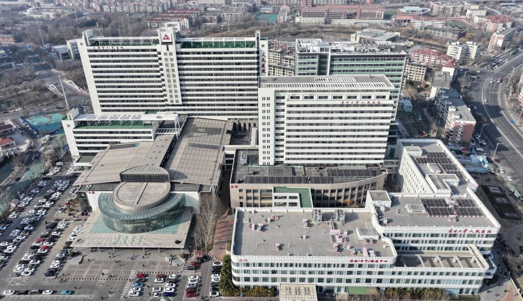 2024年3月13日拍摄的天津市人民医院全景。(新华社记者赵子硕摄)从打牢地基到大楼拔地而起,天津市人大代表、天津市人民医院院长高明几乎每天都要到工程现场看一看,并用手机拍摄记录着院内三期工程的进展。